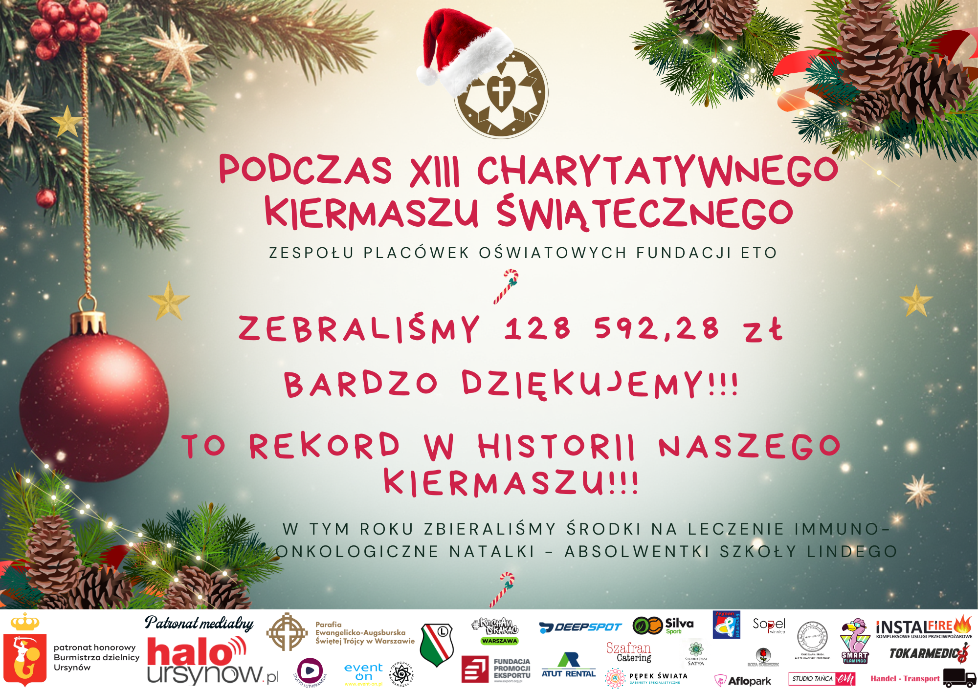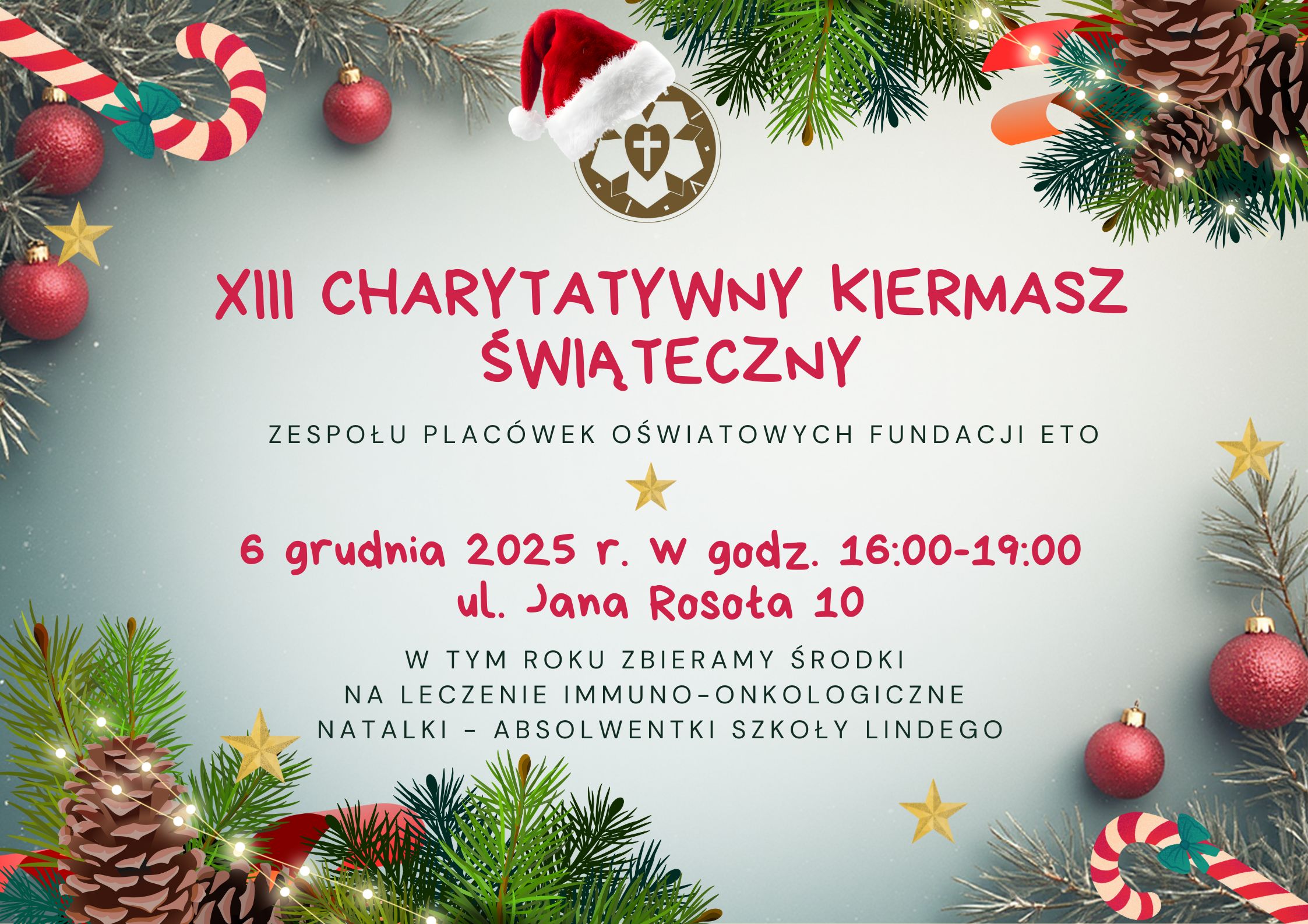 6 grudnia 2025 r. w godz. 16:00-19:00 na dziedzińcu Zespołu Placówek Oświatowych Fundacji ETO przy ul. Jana Rosoła 10 odbył się XIII Charytatywny Kiermasz Świąteczny. Celem tegorocznej zbiórki było wsparcie leczenia immuno-onkologicznego naszej...