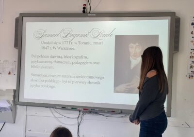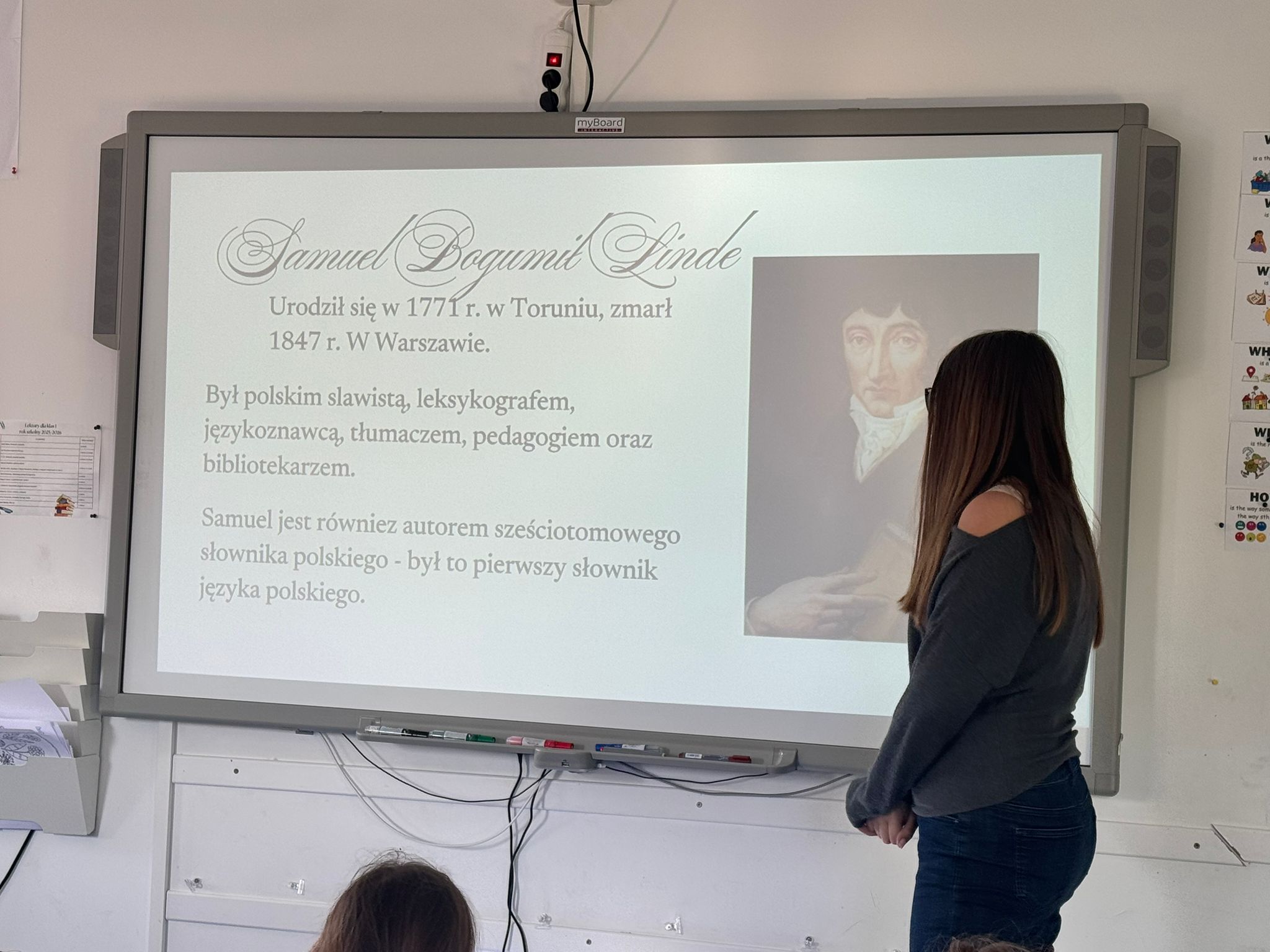 Z tej wyjątkowej okazji w postać Samuela Bogumiła Lindego wcieliła się Zosia, uczennica klasy 6.
