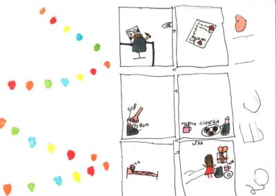 I miejsce zajęła kartka wykonana przez Wiktorię Górę (lat 8), jak również ex aequo I miejsce zajęła kartka wykonana przez Zlatę Prokopchuk (lat 8).