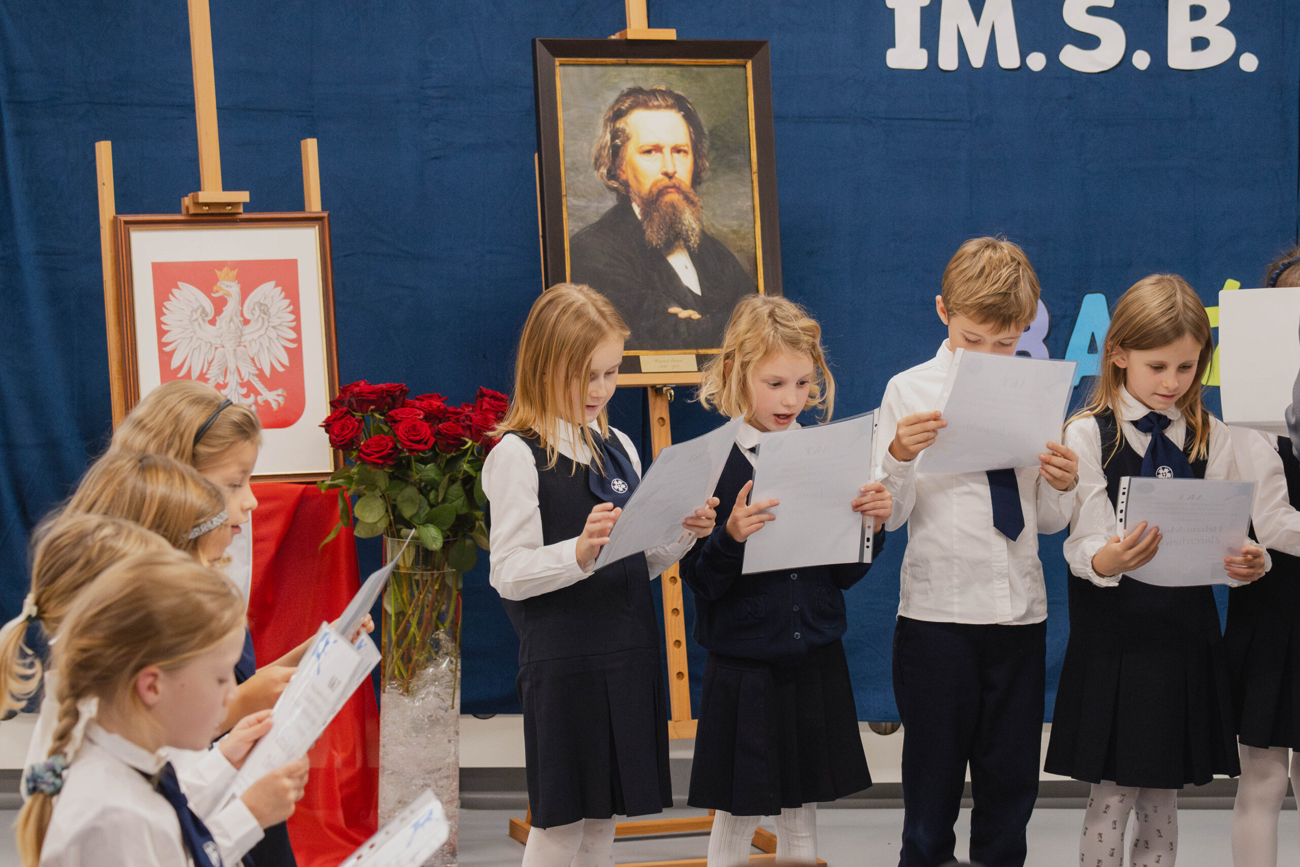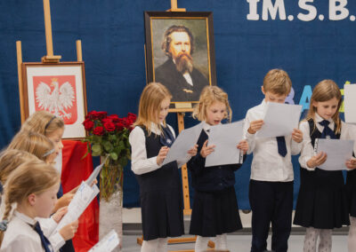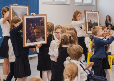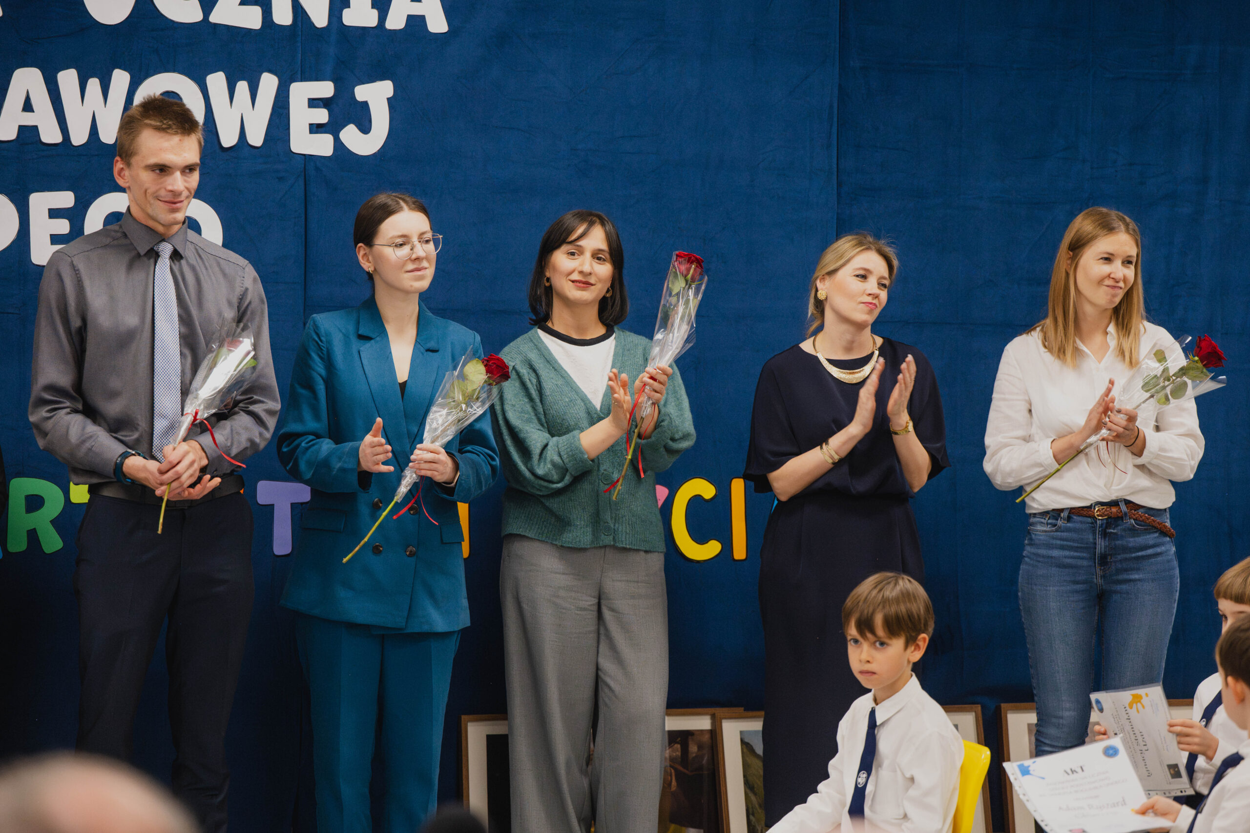Na zakończenie uroczystości dzieci otrzymały w prezencie zestaw sztalugi i pasteli – symboliczny upominek, nawiązujący do artystycznego patrona rocznika – oraz drobne prezenty od swoich starszych kolegów i koleżanek z klas szóstych.
