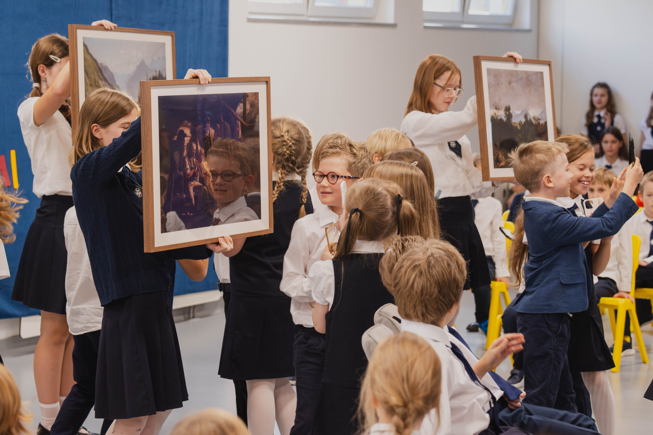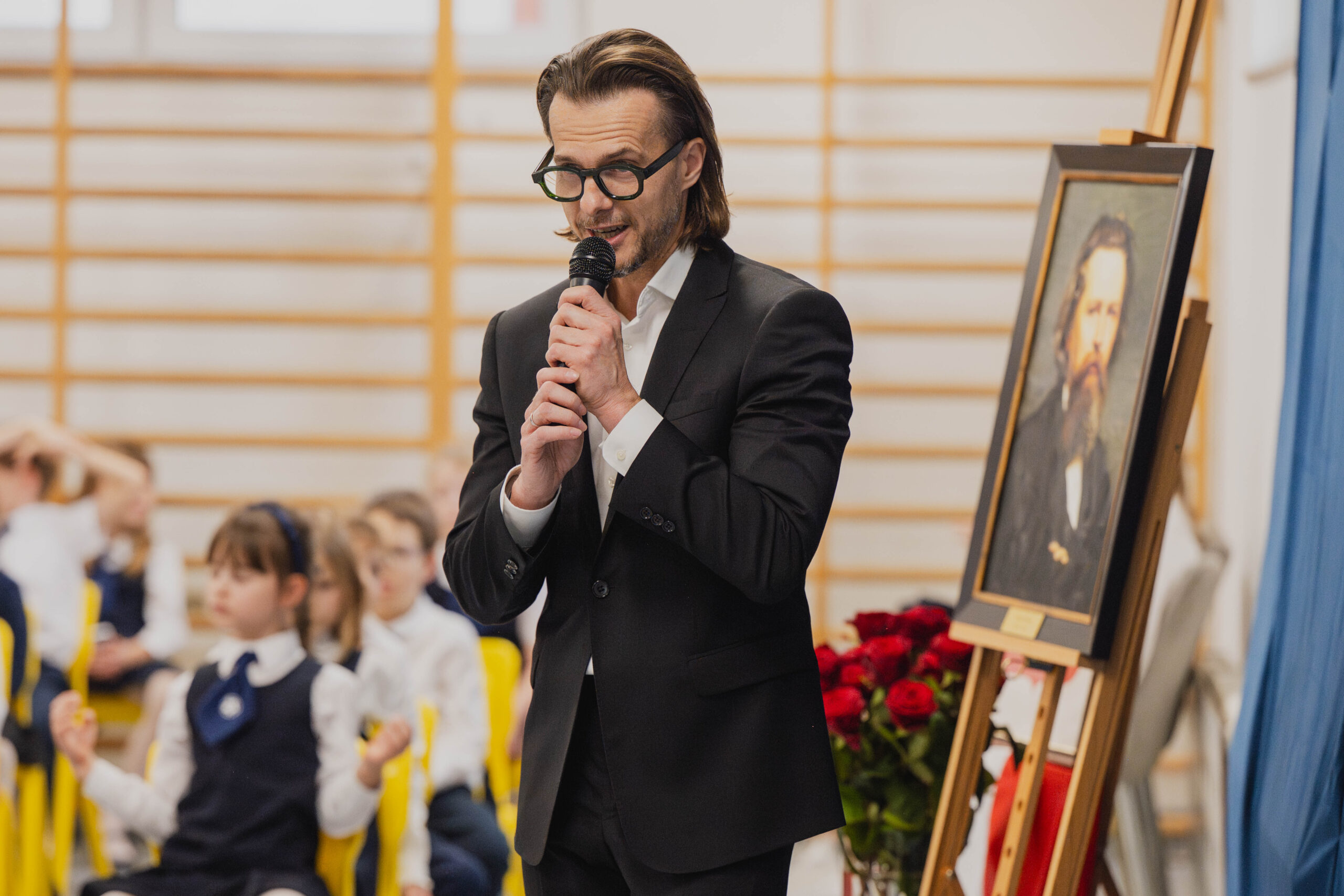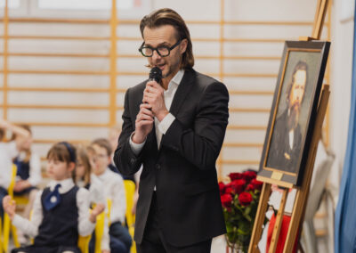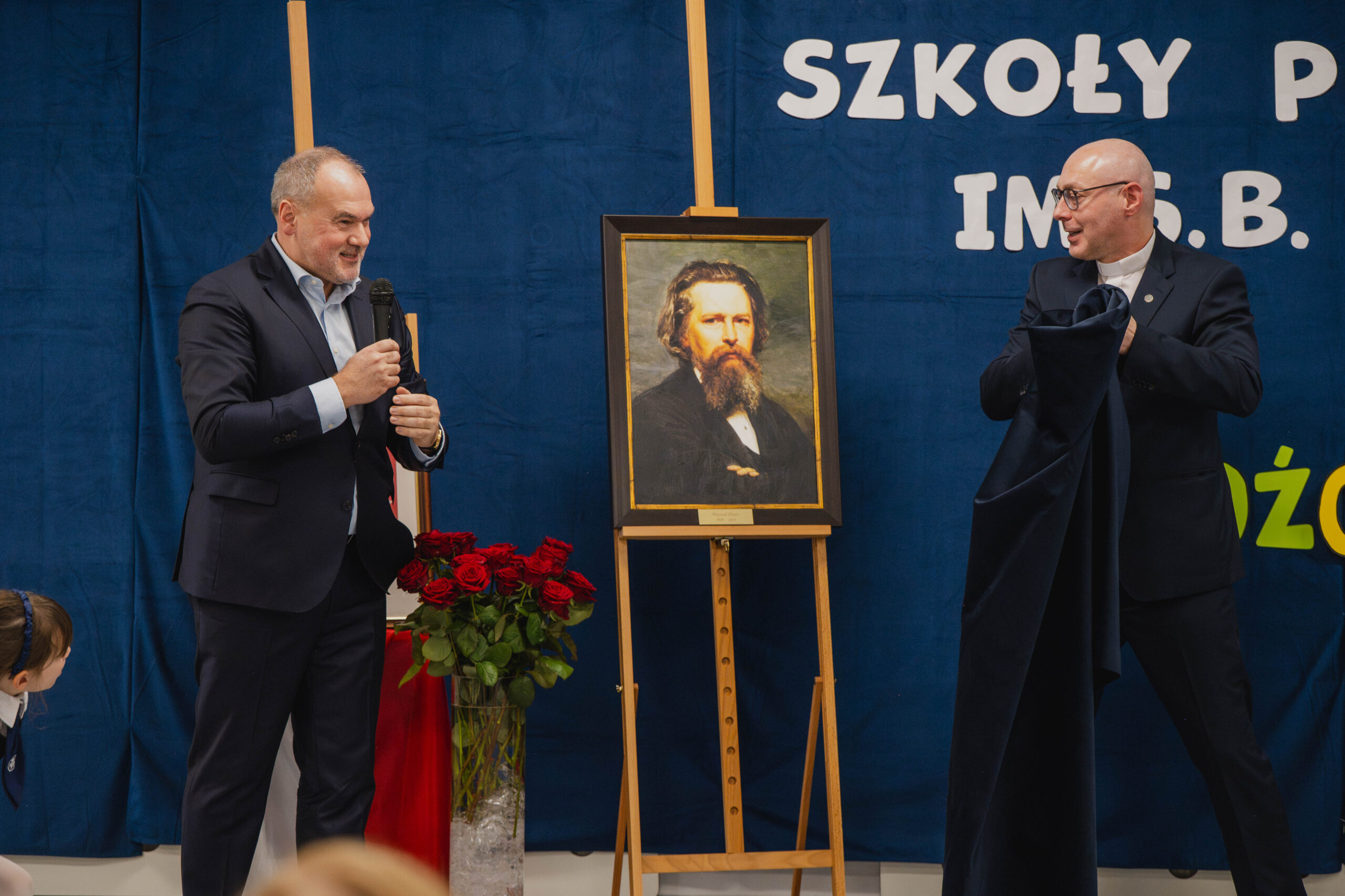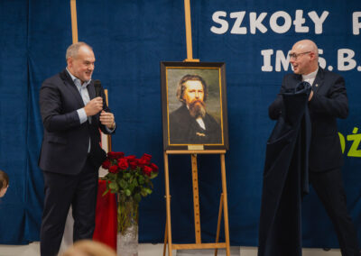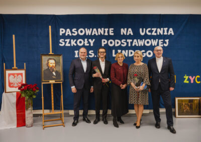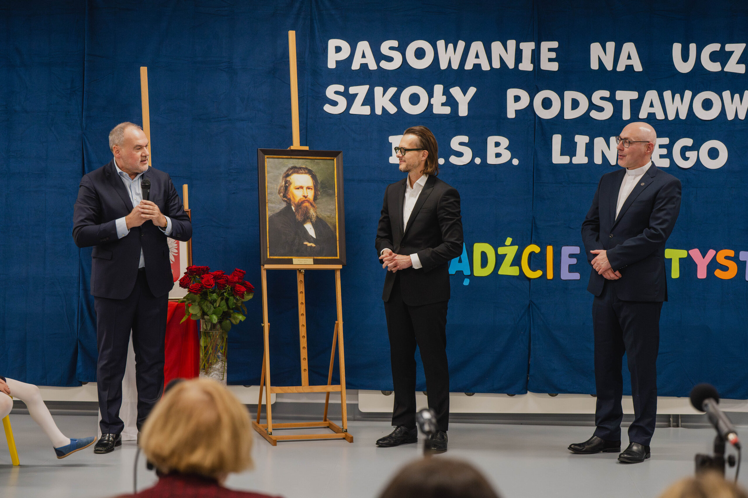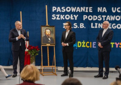Podczas uroczystości został również odsłonięty portret Wojciecha Gersona, który został patronem rocznika uczniów rozpoczynających naukę w naszej szkole we wrześniu 2025 roku. To piękna tradycja Lindego – co roku Rada Fundacji ETO wybiera patrona spośród znanych polskich ewangelików.