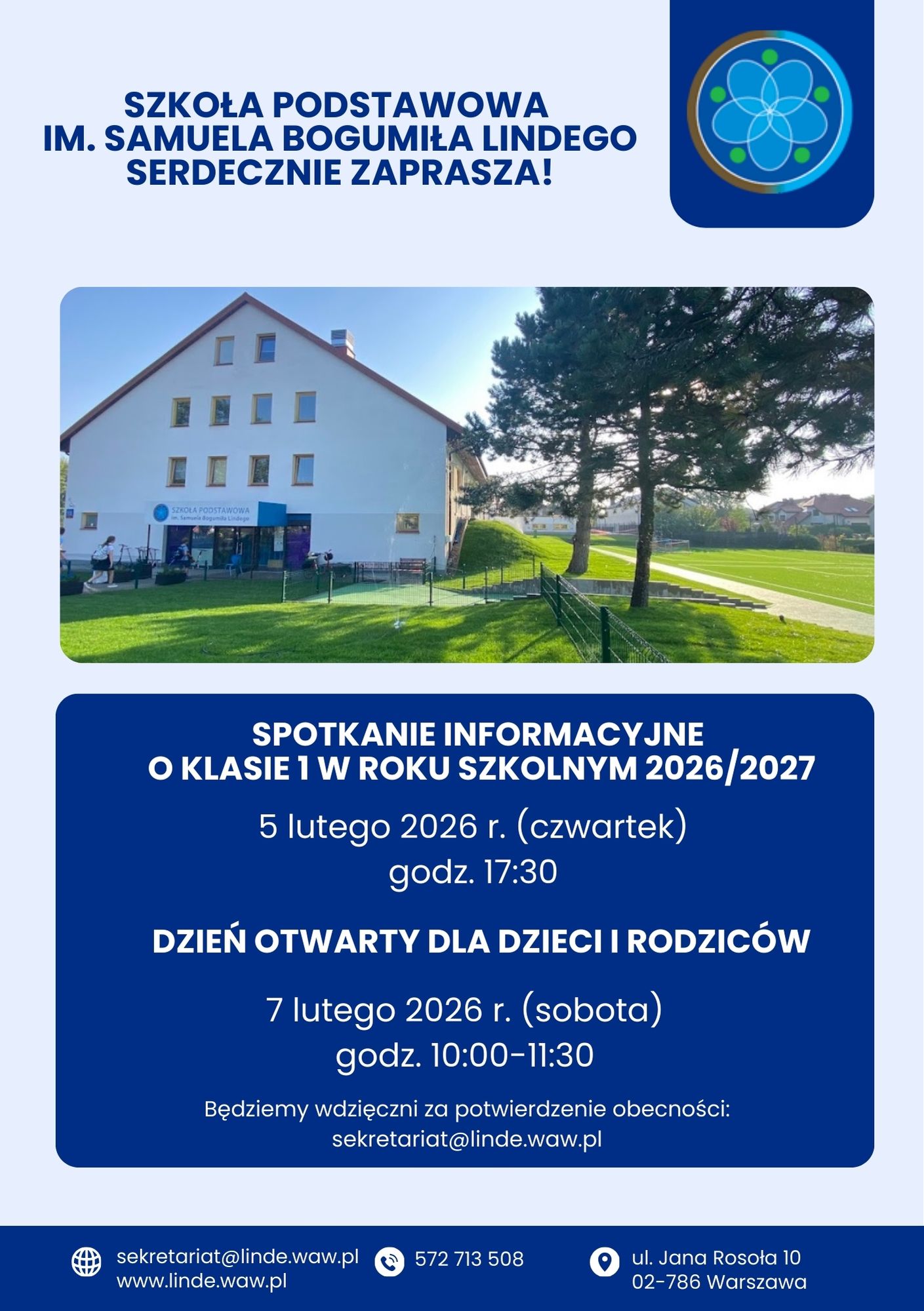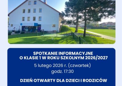 W czwartek 5 lutego odbędzie się spotkanie informacyjne, natomiast w sobotę 7 lutego w godzinach 10:00-11:30 zaplanowany jest Dzień Otwarty dla rodziców wraz z dziećmi. Będzie to dobra okazja do poznania naszej Szkoły oraz Przedszkola przy ul. Jana Rosoła 10.